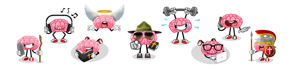 Greetings! We are Bible-Brain™ Characters (similar to emojis) and we challenge you to earn us as reward collectibles!